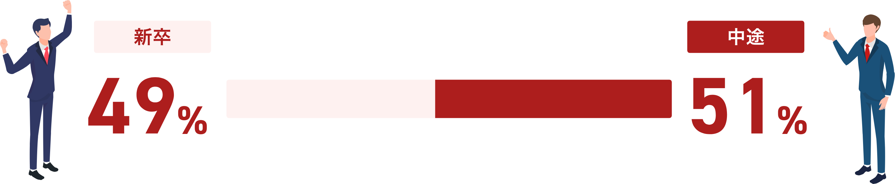 新卒社員と中途社員がほぼ同じ比率の弊社。