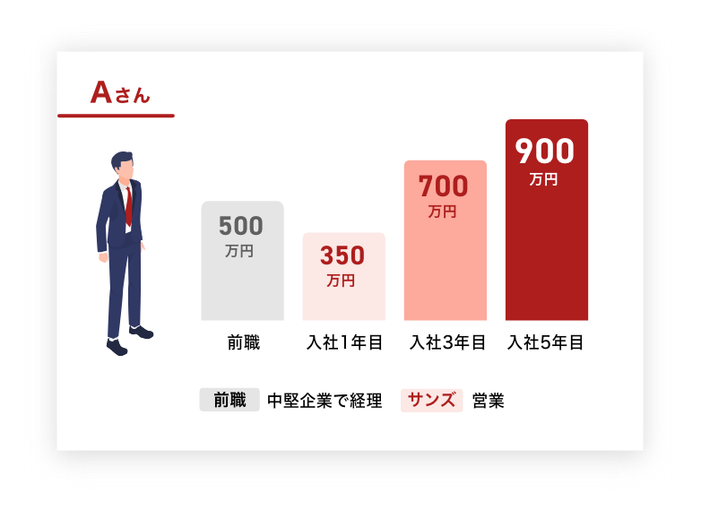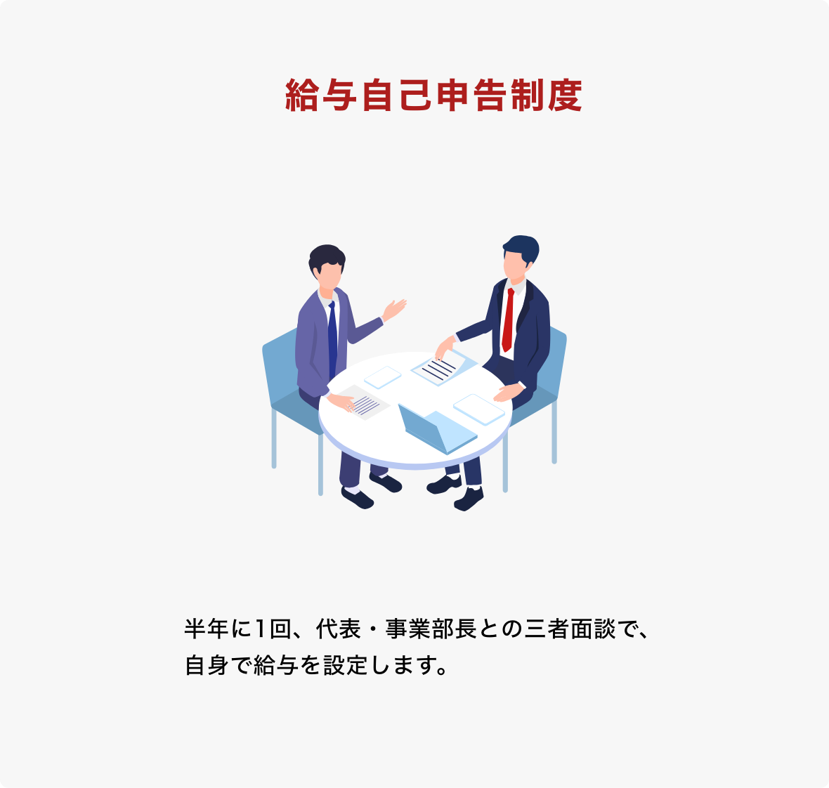 | 給与 | ※過去入社月実績を表記しています (2022年12月支給) 【月給+インセンティブ】 月給:260,000円〜 (固定残業代含む) ※基本給:213,800〜円 固定残業代/月: 46,200円〜/29時間 ※固定残業代は残業がない場合も 支給し、超過する場合は別途支給 半期インセンティブ (詳細は面談でお伝えします) |